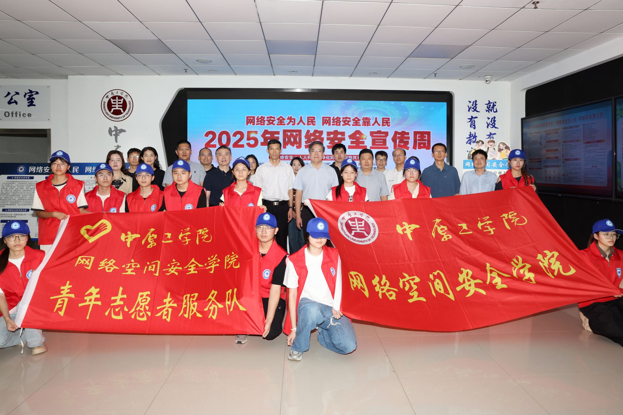 为深入贯彻落实习近平总书记关于网络安全的重要论述精神,切实提升广大师生网络安全意识和防护技能,增强师生自觉维护网络安全的能力,9月16日,信息化办公室联合校党委宣传部、网络空间安全学院、学生处、团委共同举办以“筑牢网络安全防线,共筑清朗校园空间”为主题的国家网络安全宣传周启动仪式在龙湖校区信息化服务大厅举行。校党委副书记、工会主席宋晓炜,党委宣传部部长、新闻中心主任方敬永,党委学生工作部部长、学生处处长、学生资助管理中心主任刘国存,团委书记柴高洁,信息化办公室(现代教育技术中心)主任杨磊,党委宣传部副部长、新闻中心副主任毕明理,党委学生工作部副部长、学生处副处长马凯,网络空间安全学院党总支书记詹晋浩,网络空间安全学院执行院长潘恒与师生代表参加启动仪式。